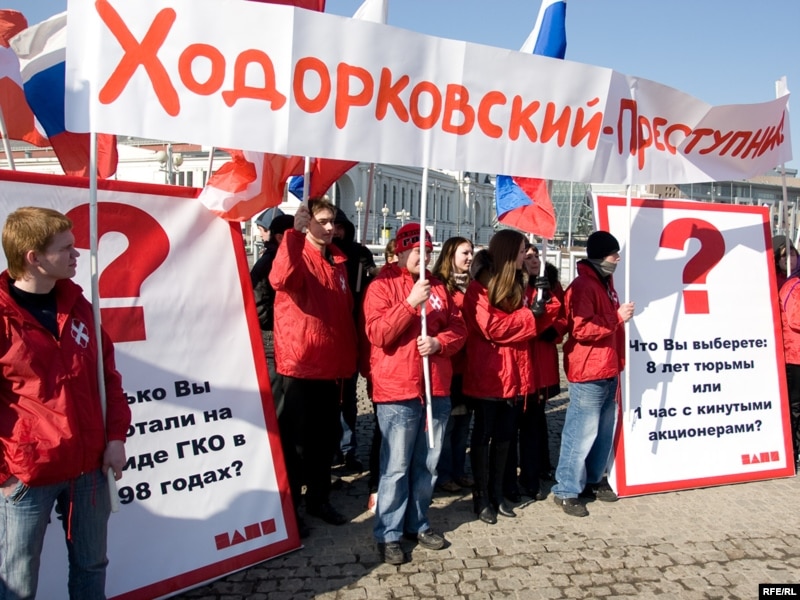 - Молодежное движение "Наши" 17 марта на этой же площади провели свой пикет под лозунгом "Ходорковский – преступник". У них не возникало проблем с префектурой?
