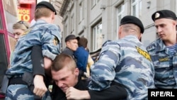 Владимир Кара-Мурза: В понедельник вечером в центре Москвы милиция не позволила активистам оппозиционной коалиции «Другая Россия» провести митинг «несогласных» на Триумфальной площади в поддержку 31 статьи конституции, гарантирующей право на свободу собраний. Собравшиеся на площади «несогласные» несколько раз выкрикивали лозунги «Свободу!». После 19.00 небольшая группа митингующих попыталась выйти с Триумфальной площади на Тверскую с криками «Позор!», однако их быстро оттеснили обратно, несколько человек были задержаны и доставлены в УВД Тверское. Одна из женщин попыталась разбросать листовки, но их у нее быстро отобрали. Среди задержанных были и девушки, которых при задержании протащили по асфальту. Как только активисты оппозиции предпринимали попытку пообщаться с журналистами, их тут же задерживала милиция. Всего были задержаны около 30 человек. Еще около 30 активистов «Другой России» проводят пикет возле отделения милиции «Тверское» с требованием отпустить соратников. О том, насколько эффективна протестная форма Маршей несогласных, об этом в традиционный день акций непримиримой оппозиции говорим с правозащитником Львом Пономаревым. Какова была главная цель сегодняшней акции?