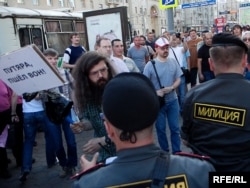Акция приобрела спонтаный характер. Кто-то показывал Конституцию России, напоминая о праве на собрание...