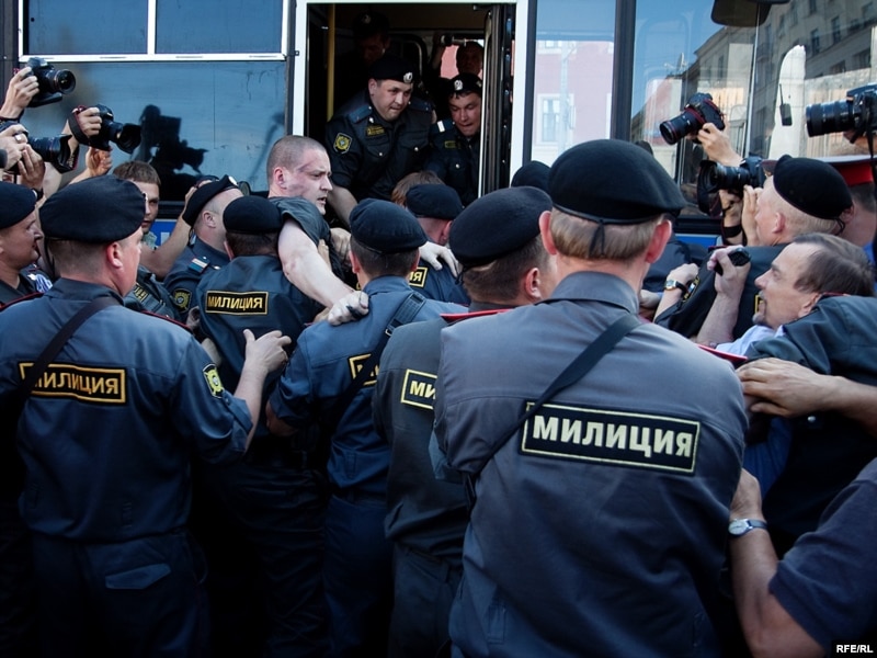 В течение следующего часа милиция через мегафон просила всех разойтись и не мешать проходу граждан. Тех, кто пытался объяснить свое право находиться где ему хочется, провожали в автобус.