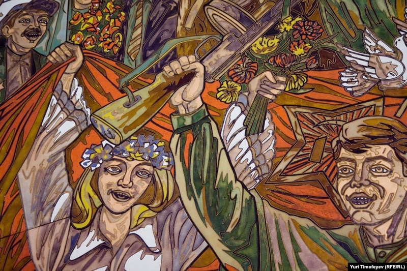 Фрагмент мозаики работы Зураба Церетели на станции метро "Парк Победы"