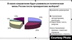 «Президент выбран. Что дальше»? – так назвали свое новое исследование социологи Воронежского Института общественного мнения «Квалитас». Что, по мнению воронежцев, будет происходить в России после выборов президента, состоявшихся в марте? «Стабилизация», - отвечают 37% опрошенных. «Рост и развитие», - так говорят 24%. «Торможение и застой» - это мнение 23% респондентов. Если же речь заходит о политических процессах в стране, то 28% воронежцев не исключают развития демократии, 26% ждут становления авторитаризма, диктатуры, - и еще столько же - нарастания хаоса и анархии. Только 6% опрошенных предполагают, что будет происходить восстановление прежних советских порядков. По свидетельству социологов, такое распределение мнений говорит о том, что горожане находятся в состоянии некоторой неопределенности по поводу близкого будущего. Экономическое положение страны и уровень жизни людей, согласно представлениям относительного большинства, в ближайшие годы практически не изменятся. При этом, по мнению уже подавляющего большинства, не изменятся также порядок и законность в стране, ситуация с преступностью и межнациональные отношения.