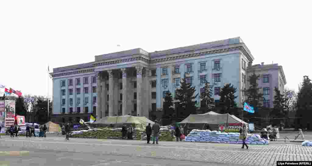 На Приморском бульваре, у памятника Дюку Ришелье - место встречи и митингов сторонников евроинтеграции Украины. Пророссийски настроенные граждане разбили палаточный лагерь на площади Куликово поле у здания областной администрации