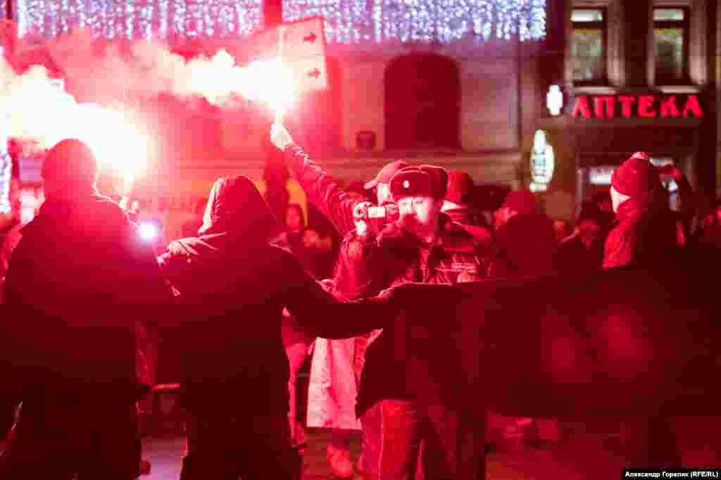 Акция была несогласованной, традиционное место сбора (так называемая площадь Свободы у Гостиного двора) было блокировано значительными силами полиции и ограждено забором, здесь же было организовано альтернативное мероприятие молодежи из сети клубов "Перспектива". Несколько активистов "Стратегии" перелезли через растяжку и зажгли файеры, после чего были задержаны сотрудниками полиции.