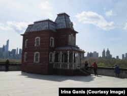 Этой весной одну из лучших в Нью-Йорке площадок отдали британской художнице Корнелии Паркер, известной своими концептуально-сюрреалистическими эскападами. Сперва она хотела перенести в город деревню, затащив на крышу настоящий красный амбар, который справедливо считается символом сельской Америки. Когда выяснилось, что амбар не поместится, ей пришла в голову более удачная мысль: поставить на крышу макет того самого зловещего мотеля “Бейтс”, который никогда не забудут миллионы зрителей фильма Хичкока “Психоз”.