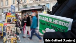 Еще одна большая карикатура на российскую тематику размещена в рубрике "Шарли у огонька". "Турция: российский посол убит посреди вернисажа", - так озаглавлено изображение, центральным элементом композиции которого является фигура человека, по всей очевидности, олицетворяющего посла РФ в Турции Андрея Карлова.