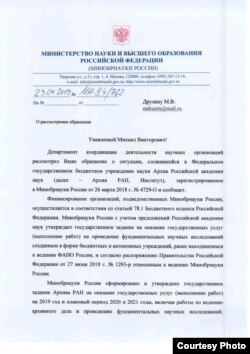 – Полученное вами министерское письмо – во многих отношениях замечательный документ. Более всего он похож на отписку. Причем на очень небрежную отписку. К примеру, Архив РАН назван там "институтом", хотя таковым не является. Полное официальное название этой структуры – "Федеральное государственное бюджетное учреждение науки Архив Российской академии наук". Слова "институт", как видим, здесь нет. О чем это свидетельствует?