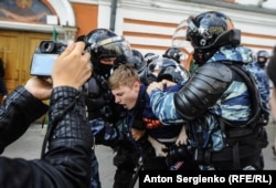 Как сегодня задерживали протестующих в Москве, фото от корреспондента Радио Свобода