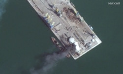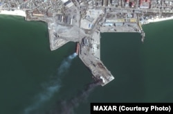 Компания Maxar Technologies в пятницу опубликовала новые спутниковые снимки, на которых видны последствия украинского удара 24 марта по порту Бердянска, где в это время находились российские десантные корабли.