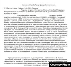 Заявление Рафката Абдуллина передал Радио Свобода российский юрист Анатолий Фурсов, к которому военный обратился за помощью. Абдуллин, как говорится в тексте документа, просит выплатить ему "моральную компенсацию за страдания", считает произошедшее следствием халатности, а виновными – Минобороны РФ и Китай.